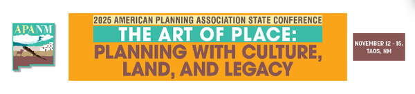 We’re excited to share the preliminary session lineup for the 2025 APA New Mexico State Planning Conference, “The Art of Place: Planning with Culture, Land, and Legacy,” taking place in Taos, November 12–15. This year’s program brings together planners, researchers, community leaders, and policymakers from across New Mexico and beyond for thoughtful conversations, practical insights, and on-the-ground learning. Sessions span housing, transportation, equity, climate resilience, cultural preservation, and more—reflecting the breadth and depth of planning in our state.